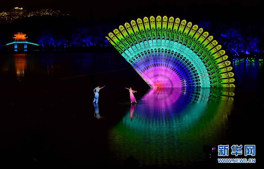 ??? 9月4日,演員在表演《美麗的愛(ài)情傳說(shuō)》。當(dāng)日,出席二十國(guó)集團(tuán)領(lǐng)導(dǎo)人杭州峰會(huì)的G20成員和嘉賓國(guó)領(lǐng)導(dǎo)人及有關(guān)國(guó)際組織負(fù)責(zé)人在杭州西湖景區(qū)觀看《最憶是杭州》實(shí)景演出交響音樂(lè)會(huì)。新華社記者 張鐸 攝