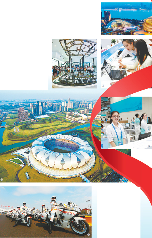 圖④:杭州國(guó)際博覽中心和杭州奧體中心主體育場(chǎng)。