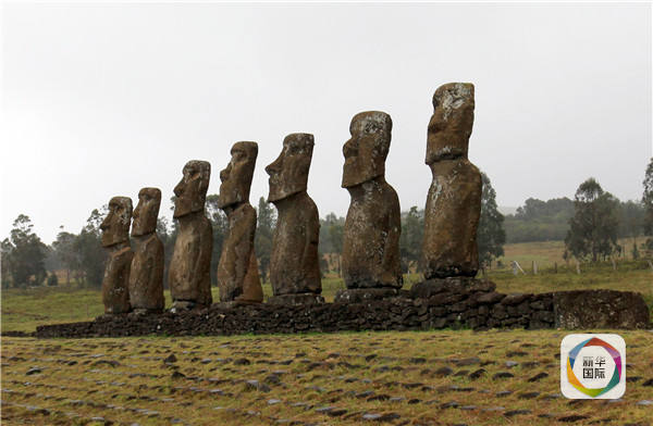 位于復(fù)活節(jié)島中部的“阿胡阿奇利”巨人石像群。(新華社記者葉書宏攝)