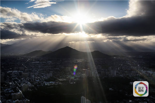 智利圣盧西亞山觀景臺上看到的首都圣地亞哥市貌。(新華社/衛(wèi)星社)