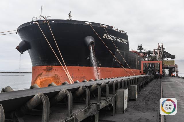 寧波遠(yuǎn)洋公司的貨輪正在裝運(yùn)鐵礦粉。(新華社記者申宏攝)