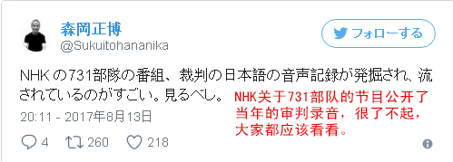 節(jié)目播出以后,在日本引起了強(qiáng)烈反響。許多正義的日本網(wǎng)友義憤填膺,紛紛發(fā)出聲音譴責(zé)當(dāng)年日軍的暴行。
