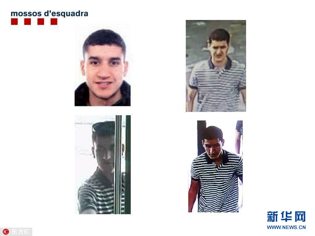當(dāng)?shù)貢r(shí)間2017年8月21日,西班牙加泰羅尼亞警方發(fā)布的巴塞羅那駕車沖撞人群恐襲案嫌犯照片,尤尼斯·阿布雅各布。