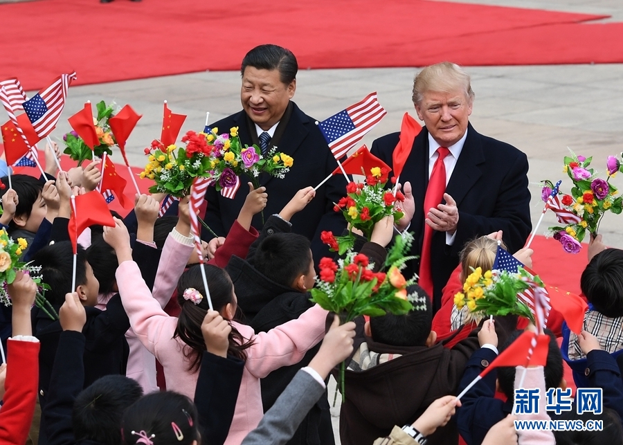 11月9日,國家主席習(xí)近平在北京人民大會堂東門外廣場舉行歡迎儀式,歡迎美利堅合眾國總統(tǒng)唐納德·特朗普對中國進行國事訪問。 新華社記者饒愛民 攝