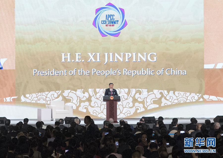 2017年亞太經(jīng)合組織工商領(lǐng)導(dǎo)人峰會10日在越南峴港舉行。國家主席習(xí)近平發(fā)表題為《抓住世界經(jīng)濟轉(zhuǎn)型機遇 謀求亞太更大發(fā)展》的主旨演講。