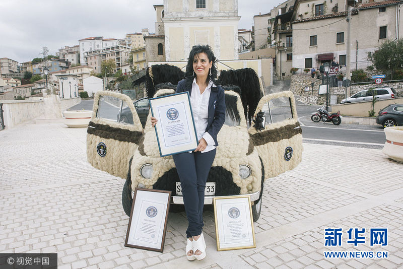 當地時間2017年10月22日,意大利帕杜拉,一位意大利發(fā)型設計師Maria Lucia Mugno花費了超過8萬英鎊來裝飾自己的車子,這讓她獲得了吉尼斯世界紀錄。這項工程需要150個小時來完成,用于裝飾的頭發(fā)總重量達到100公斤。(圖片來源:視覺中國)