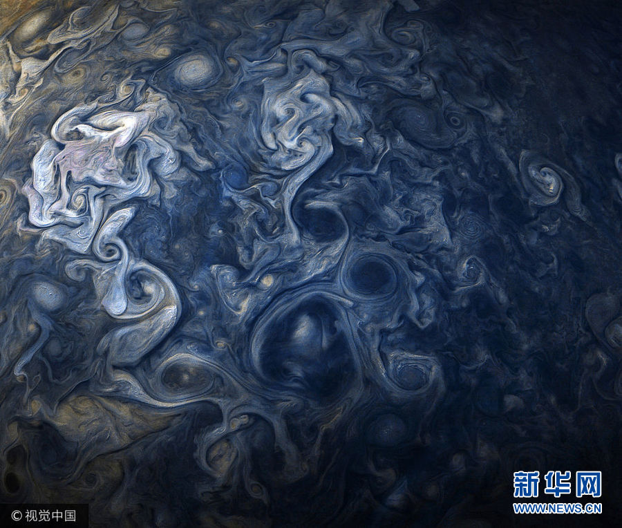 12月21日訊(具體拍攝時(shí)間不詳),這一系列由木星探測器“朱諾”號帶來的高清圖,錯(cuò)綜復(fù)雜的星云結(jié)構(gòu)看上去就像印象派大師的畫作。(圖片來源:視覺中國)