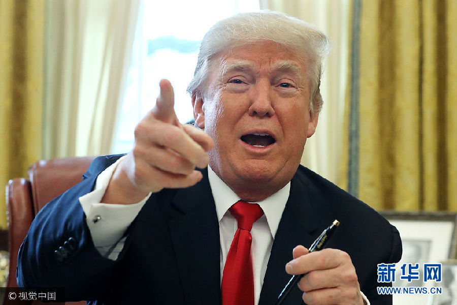 當(dāng)?shù)貢r(shí)間22日,美國華盛頓,美國總統(tǒng)特朗普在白宮的橢圓形辦公室簽署1.5萬億美元稅改法案,此乃美國最近逾30年來最大規(guī)模減稅行動。(圖片來源:視覺中國)