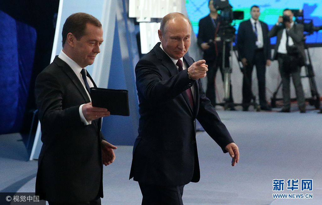 當?shù)貢r間2017年12月23日,俄羅斯莫斯科,俄羅斯總統(tǒng)普京出席第17次統(tǒng)一俄羅斯黨大會。(圖片來源:視覺中國)