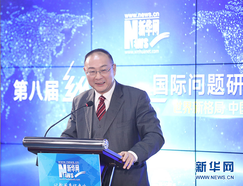 12月26日,新華網(wǎng)第八屆“縱論天下”國(guó)際問題研討會(huì)成功舉行。圖為中國(guó)人民大學(xué)國(guó)際關(guān)系學(xué)院副院長(zhǎng)、教授金燦榮在主旨演講。新華網(wǎng)發(fā)(郭小天攝)。