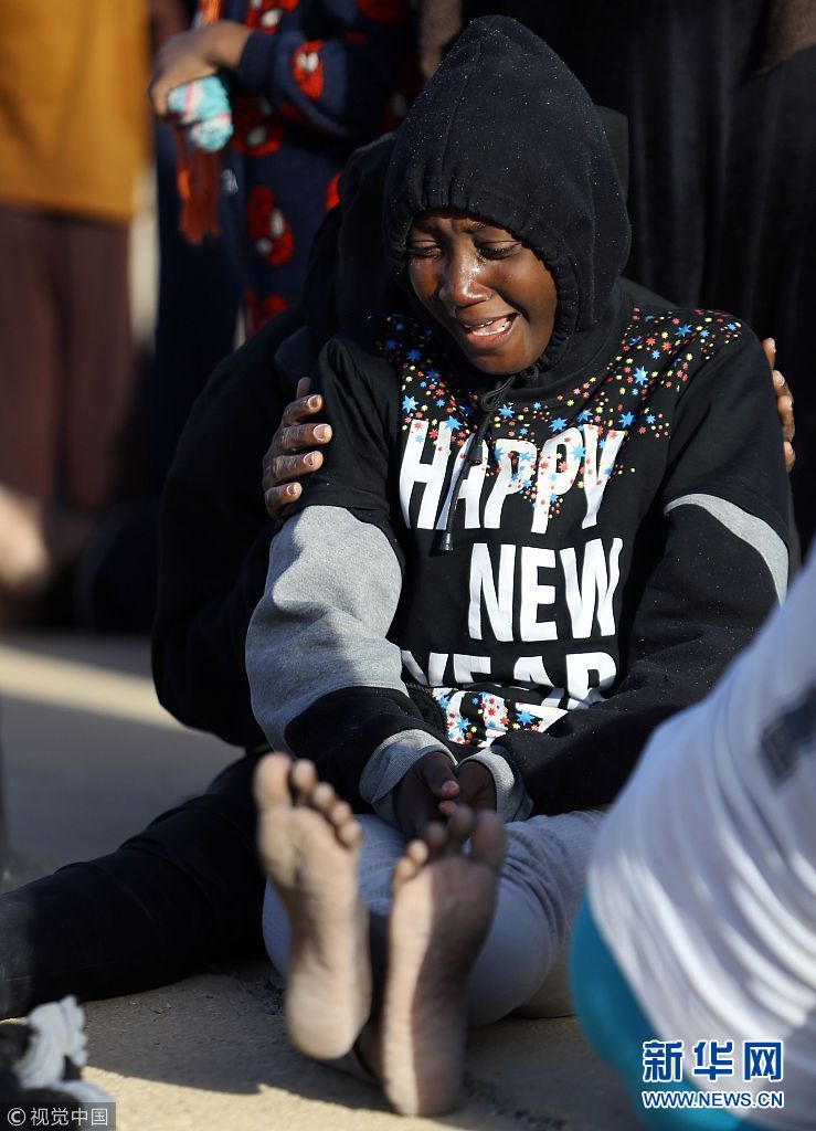 當(dāng)?shù)貢r間2018年1月7日,利比亞的黎波里,獲救的非法移民。6日上午在利比亞附近海域發(fā)生了一起非法移民船傾覆事故,在巡邏飛機(jī)發(fā)現(xiàn)該遇險船只后,周圍的意大利海岸警衛(wèi)隊及意大利海軍船只迅速駛近實(shí)施救援,成功救起80余人,同時發(fā)現(xiàn)了8名遇難者。據(jù)外媒報道,這艘小船從該國海岸出發(fā)時載有超過100人。(圖片來源:視覺中國)