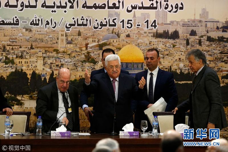 1月14日,約旦河西岸拉馬拉,巴勒斯坦總統(tǒng)阿巴斯在巴勒斯坦中央委員會(huì)會(huì)議上發(fā)表講話,并稱以色列已經(jīng)“終止”了奧斯陸協(xié)議。(圖片來源:視覺中國(guó))
