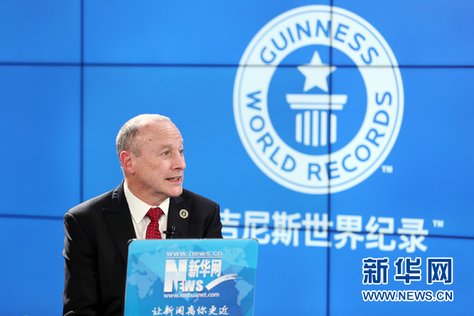 吉尼斯世界紀(jì)錄全球總裁阿里斯塔爾·理查茲接受新華網(wǎng)訪談。新華網(wǎng)發(fā) 郭小天攝
