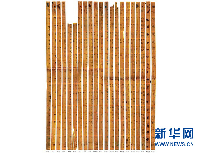資料圖片:清華大學(xué)收藏的戰(zhàn)國(guó)竹簡(jiǎn)《算表》,經(jīng)認(rèn)證為“最早的十進(jìn)制乘法表”。(吉尼斯世界紀(jì)錄供圖)