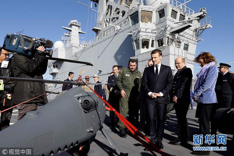 1月19日,法國土倫,法國總統(tǒng)馬克龍視察了當?shù)氐暮\娀夭⑾蚴勘鴤儼l(fā)表新年祝福。(圖片來源:視覺中國)