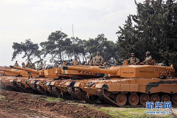 1月21日,在土耳其哈塔伊省與敘利亞邊境地區(qū),土軍地面部隊準備開往敘利亞北部阿夫林。土耳其總理耶爾德勒姆21日宣布,土耳其軍隊當天上午已進入敘利亞邊境,展開對敘北部阿夫林的地面軍事行動。 新華社發(fā)