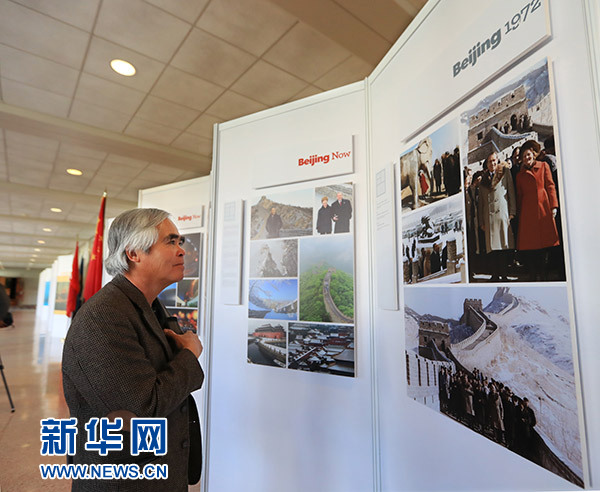 “中國旅游業(yè)正邁向優(yōu)質旅游發(fā)展新時代。我們希望參觀這次圖片展的美國觀眾能從中發(fā)現(xiàn)中國之美,從歷史圖片與當今圖片的對比中了解到中國城市的嶄新面貌,更希望這次圖片展激發(fā)他們沿著當年尼克松的足跡去中國走一走、看一看,與熱情好客的普通中國人坐在一起,喝喝茶、聊聊天?!蔽鋵幷f。