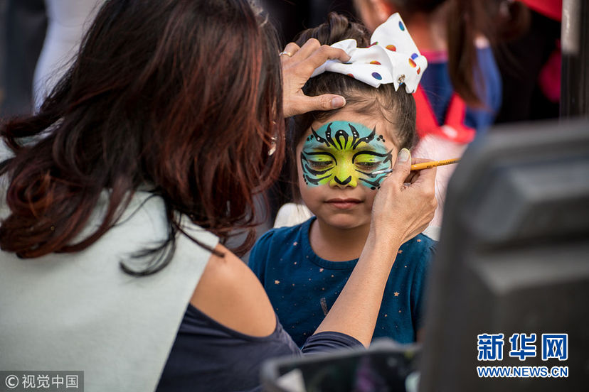 當(dāng)?shù)貢r(shí)間1月28日,美國(guó)洛杉磯,當(dāng)?shù)谿rove商場(chǎng)舉行少林武術(shù)表演以及其他中國(guó)文化類的演出,慶祝傳統(tǒng)新年,場(chǎng)外攤位還有傳統(tǒng)剪紙,捏面人,糖畫(huà),彩繪等項(xiàng)目。圖為彩繪。(圖片來(lái)源:視覺(jué)中國(guó))