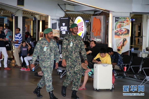 2月7日,軍人在馬爾代夫馬累國際機(jī)場(chǎng)巡邏。新華社記者 朱瑞卿 攝