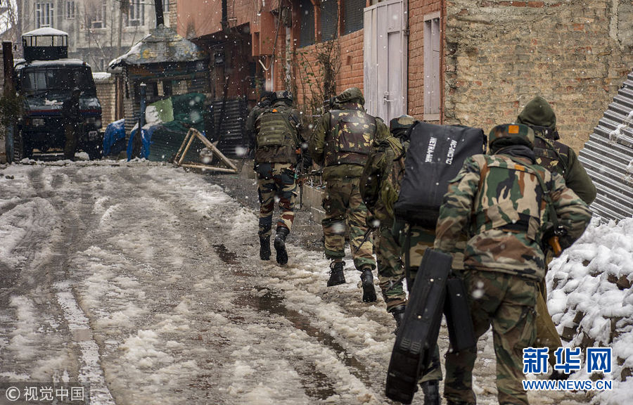 2月12日,印控克什米爾斯利那加,印度政府軍與疑似激進(jìn)分子展開槍戰(zhàn)。兩名持槍歹徒在他們的營地附近開火致一名印度準(zhǔn)軍事部隊士兵死亡。(圖片來源:視覺中國)