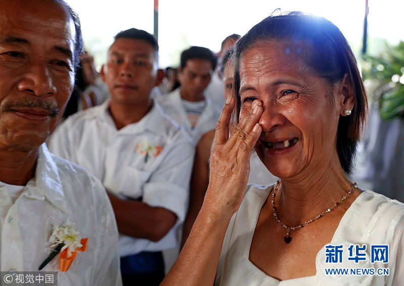 2月13日,菲律賓蘇比克,情人節(jié)前夕,當(dāng)?shù)嘏e辦集體婚禮。(圖片來(lái)源:視覺中國(guó))