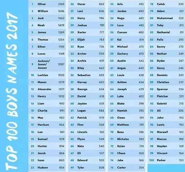 下面這些,可是2017年外國(guó)人最愛的英文名字,