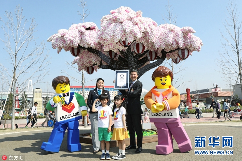 當(dāng)?shù)貢r間2018年3月28日,日本名古屋,日本樂高樂園主題公園用樂高積木堆出一棵櫻花樹,被吉尼斯世界紀錄認證為世界最高的樂高櫻花樹。(圖片來源:東方IC)