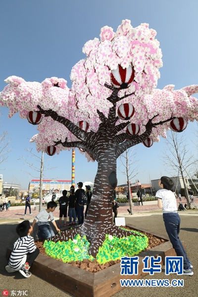 當(dāng)?shù)貢r間2018年3月28日,日本名古屋,日本樂高樂園主題公園用樂高積木堆出一棵櫻花樹,被吉尼斯世界紀(jì)錄認(rèn)證為世界最高的樂高櫻花樹。(圖片來源:東方IC)