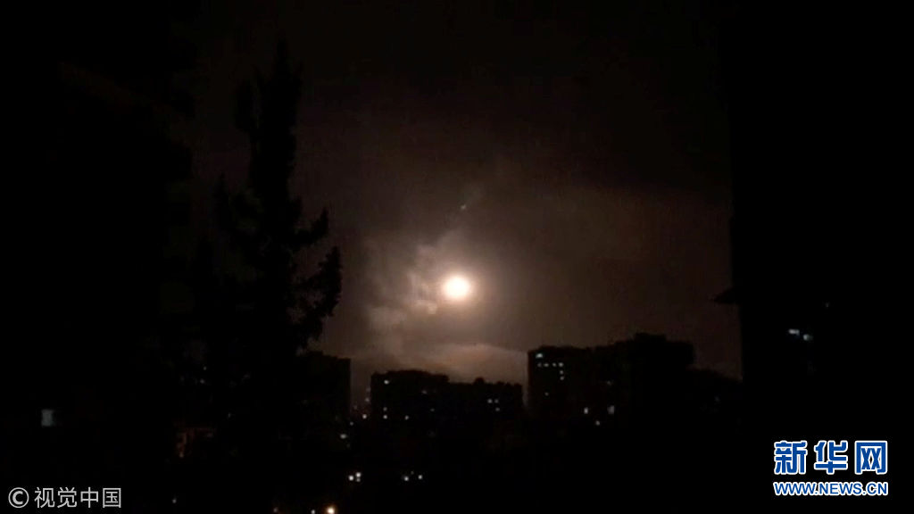 4月14日,敘利亞大馬士革,特朗普決定聯(lián)合英國和法國對敘利亞進(jìn)行精確打擊,大馬士革傳出爆炸聲,敘利亞方面進(jìn)行反擊。敘利亞阿拉伯?dāng)⒗麃喭ㄓ嵣?SANA)報道,敘政府軍在大馬士革以南地區(qū)擊落13枚導(dǎo)彈。敘利亞國家電視臺此前稱美英法三國對敘利亞“發(fā)動了侵略”。(圖片來源:視覺中國)