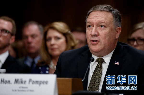 美參議院批準(zhǔn)蓬佩奧出任國(guó)務(wù)卿美國(guó)國(guó)會(huì)參議院4月26日投票批準(zhǔn)邁克·蓬佩奧出任美國(guó)國(guó)務(wù)卿。蓬佩奧于當(dāng)天宣誓就職。這是邁克·蓬佩奧在華盛頓出席美國(guó)國(guó)會(huì)參議院舉行的國(guó)務(wù)卿提名人聽(tīng)證會(huì)的資料照片(4月12日攝)。 新華社發(fā) 沈霆攝