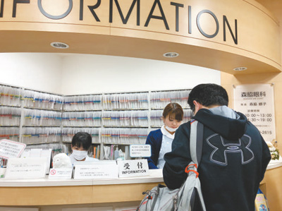 日本東京某私立醫(yī)院內(nèi),工作人員正在給病人登記。記者 劉軍國 攝