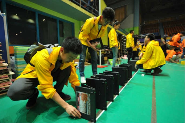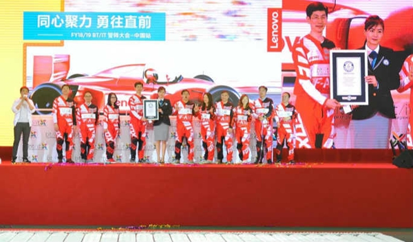 據(jù)吉尼斯世界紀錄官網(wǎng)報道,近日,聯(lián)想集團在北京航空航天大學體育館舉辦了以“同心聚力,勇往直前”為主題的誓師大會,1300名聯(lián)想員工參加了此次大會,并創(chuàng)造了一項新的吉尼斯世界紀錄稱號。在吉尼斯世界紀錄認證官的見證下,所有員工歷時兩小時,用520臺筆記本電腦成功創(chuàng)造“以多米諾骨牌形式擺放并推倒最多筆記本電腦”的新紀錄。
