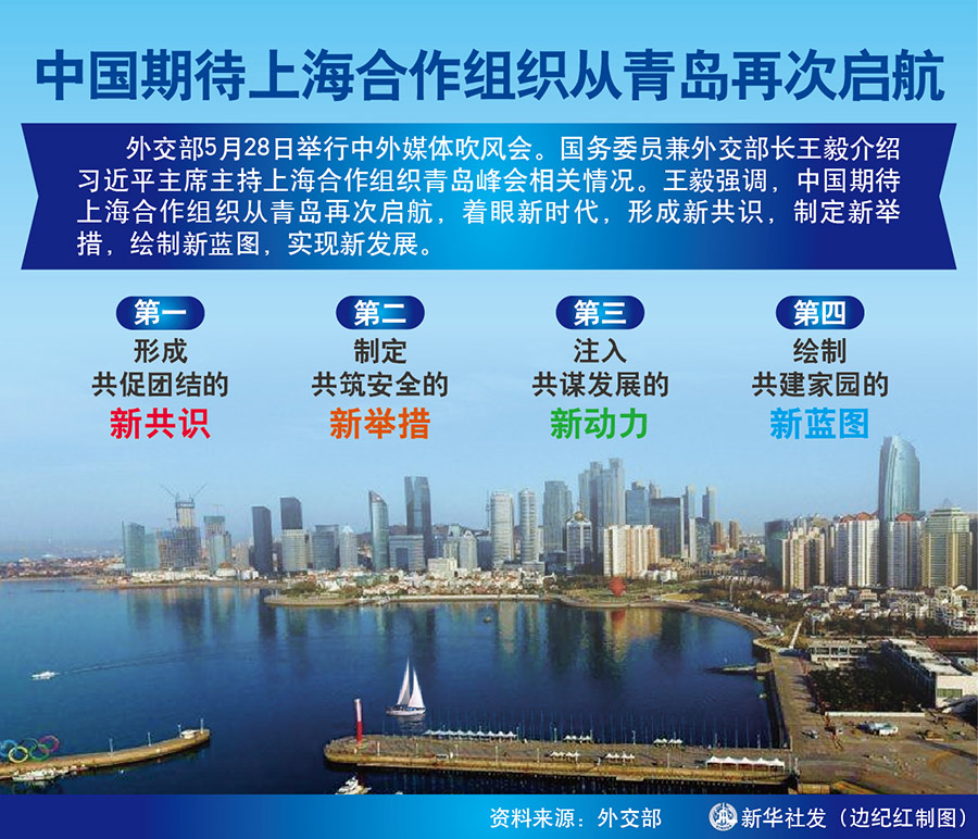 王毅強(qiáng)調(diào),我們期待上海合作組織從青島再次啟航,著眼新時(shí)代,形成新共識(shí),制定新舉措,繪制新藍(lán)圖,實(shí)現(xiàn)新發(fā)展。