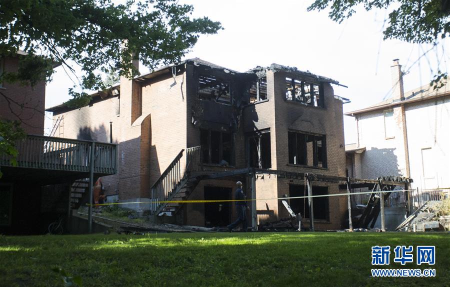 5月30日,在加拿大多倫多,警方在失火房屋外拉起警戒線并展開調查。新華社發(fā)(鄒崢 攝)