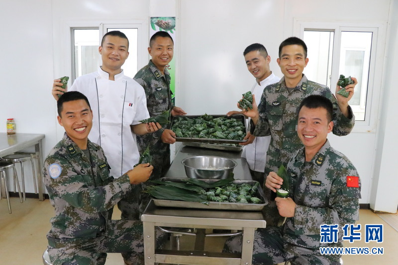 6月15日,在南蘇丹西部城市瓦烏,中國(guó)第八批赴南蘇丹(瓦烏)維和工程兵大隊(duì)官兵平安過(guò)端午佳節(jié)。新華網(wǎng)發(fā) 張曉昆 攝