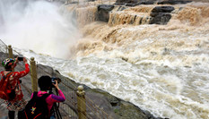 黃河壺口瀑布現(xiàn)半清半濁景觀