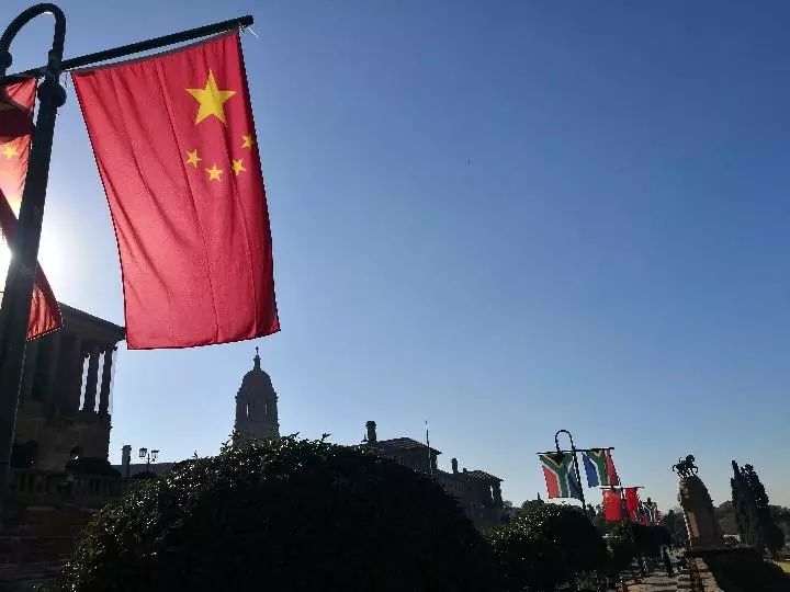 比勒陀利亞聯(lián)邦大廈廣場(chǎng),草木蔥蘢。廣場(chǎng)旁的大道上,中國和南非兩國國旗高高掛起,迎風(fēng)飄揚(yáng)。