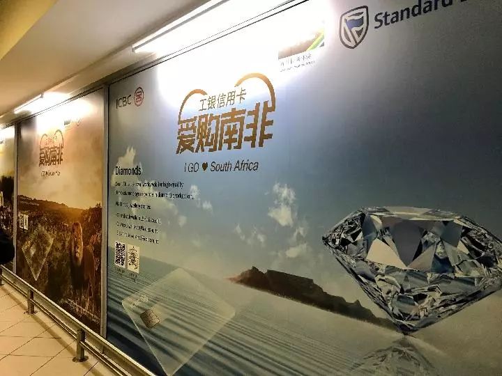 約翰內(nèi)斯堡奧利弗·坦博國際機(jī)場(chǎng)內(nèi),中國工商銀行和南非標(biāo)準(zhǔn)銀行聯(lián)合推出的中英雙語廣告非常醒目。