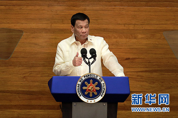 7月23日,在菲律賓奎松城,菲律賓總統(tǒng)杜特爾特發(fā)表年度國(guó)情咨文。 新華社發(fā)(魯埃勒·烏馬利 攝)