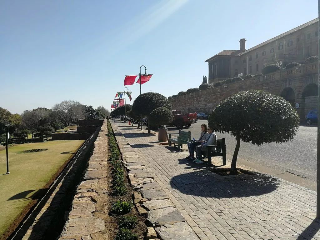 按照以往國事訪問的慣例,南非總統(tǒng)將在聯(lián)邦大廈廣場為習(xí)近平主席舉行隆重歡迎儀式。在習(xí)近平主席抵達(dá)的前幾天,聯(lián)邦大廈前的道路上已經(jīng)掛滿了中國和南非兩國國旗。