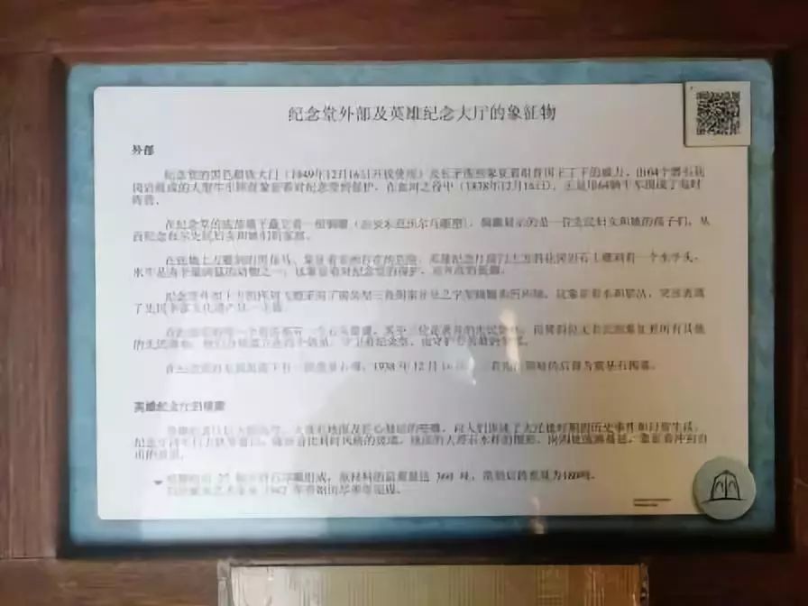 先民紀(jì)念館入口處的中文簡介