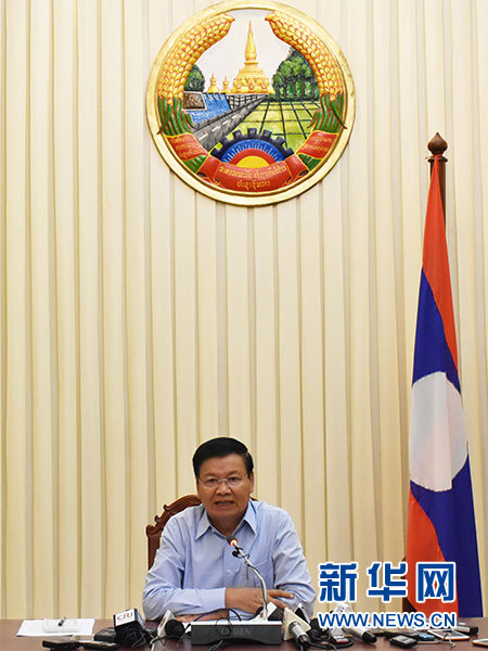 7月25日,老撾總理通倫在首都萬象的總理府向媒體介紹潰壩情況。新華社發(fā)(李莎 攝)