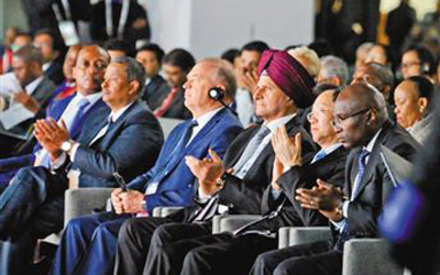 在金磚國(guó)家工商論壇會(huì)場(chǎng),會(huì)議主持人在致開(kāi)幕詞時(shí),提議與會(huì)嘉賓起立鼓掌一分鐘,為金磚國(guó)家這些年取得的合作成就喝彩。坐在本報(bào)記者身旁的一位先生掌聲尤其熱烈,一邊鼓掌,一邊還發(fā)出歡呼聲。他是南非標(biāo)準(zhǔn)銀行總裁蘇卡尼·雅巴舍。