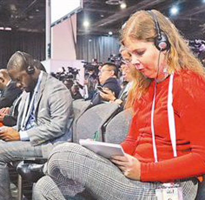 金磚國(guó)家工商論壇現(xiàn)場(chǎng),記者正在認(rèn)真記錄。本報(bào)記者 謝亞宏攝