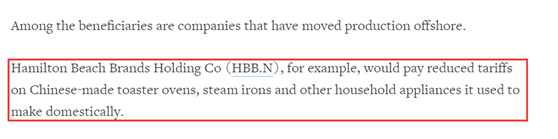 而且,部分該法案涉及的產(chǎn)品也不都是簡(jiǎn)單的零部件或基礎(chǔ)化學(xué)品,還有不少是中國(guó)已經(jīng)制作好的成品,比如烤面包機(jī)、電熨斗等家用產(chǎn)品。