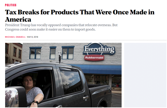 這方面,美國(guó)的《大西洋月刊》倒是在今年5月美國(guó)對(duì)華貿(mào)易戰(zhàn)開打前有所關(guān)注。當(dāng)時(shí)這家媒體認(rèn)為,這個(gè)法案展現(xiàn)了美國(guó)當(dāng)下貿(mào)易政策的一種矛盾:一方面美國(guó)國(guó)會(huì)兩黨都希望給大企業(yè)進(jìn)一步減輕關(guān)稅壓力——甭管他們的產(chǎn)品到底是哪兒生產(chǎn)的;可另一方面美國(guó)總統(tǒng)特朗普卻多次表示要懲罰把工廠搬到美國(guó)境外的企業(yè)。