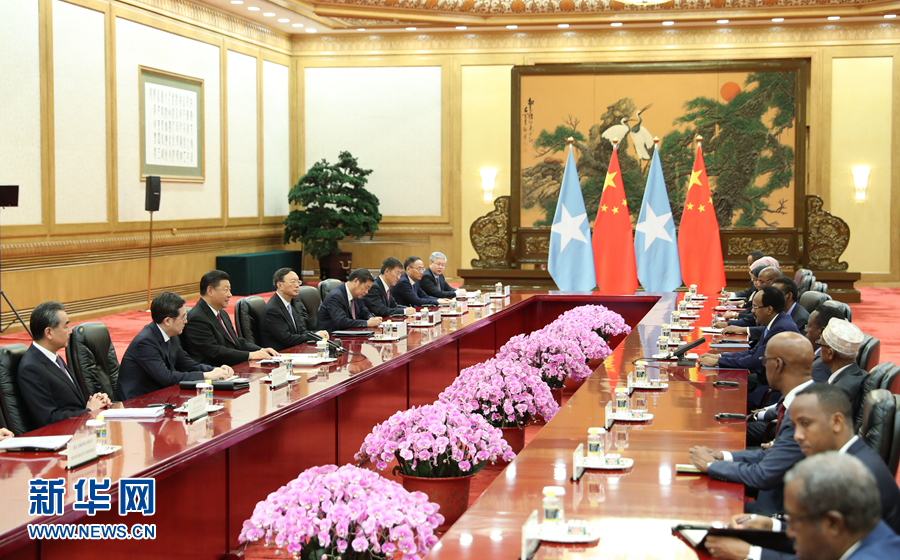 8月31日,國家主席習近平在北京人民大會堂會見索馬里總統(tǒng)穆罕默德。 新華社記者 丁林 攝