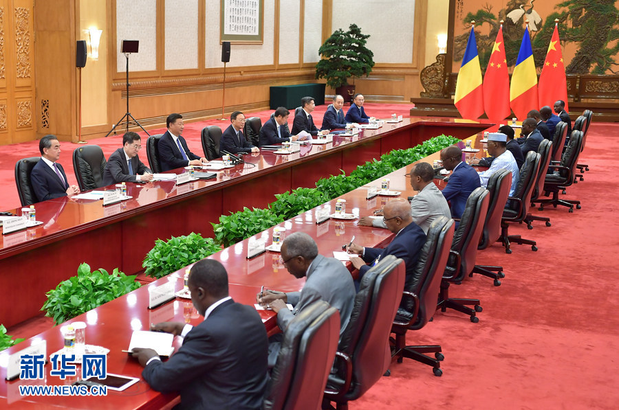 9月5日,國家主席習(xí)近平在北京人民大會(huì)堂會(huì)見乍得總統(tǒng)代比。 新華社記者 李濤 攝