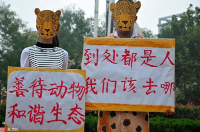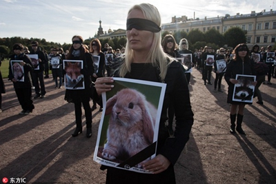 手持動物畫像,宣傳“動物不是衣服”
