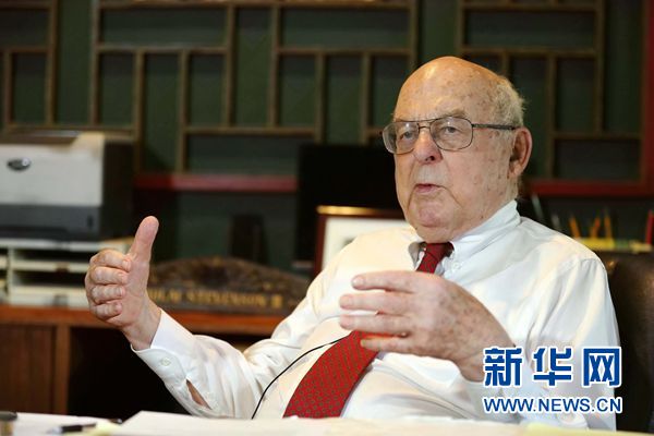 7月16日,美國(guó)前聯(lián)邦參議員斯蒂文森三世在芝加哥的家中接受新華社記者專(zhuān)訪。新華社記者汪平攝